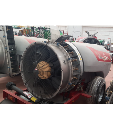 Atomizador arrastrado a tractor Agrosan Huracan 2000L, con bomba de piston de 150 litros, chasis galvanizado con viga UPN, sistema SONAR con ordenador Bravo 140, Turbina 920 VNS con doble fila de boquillas, deflector superior en V, lanza en V y trasmisión homocinética.